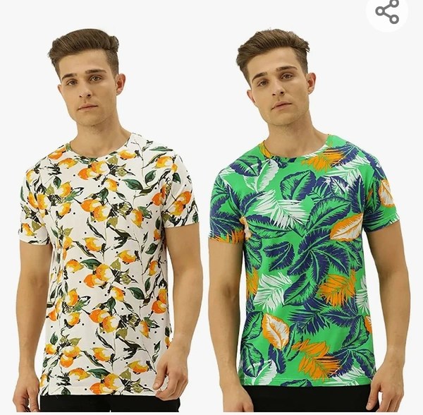 Veirdo Men's Cotton Round Neck Half Sleeve Regular Fit Floral Printed Combo T-Shirt-Pack of 2