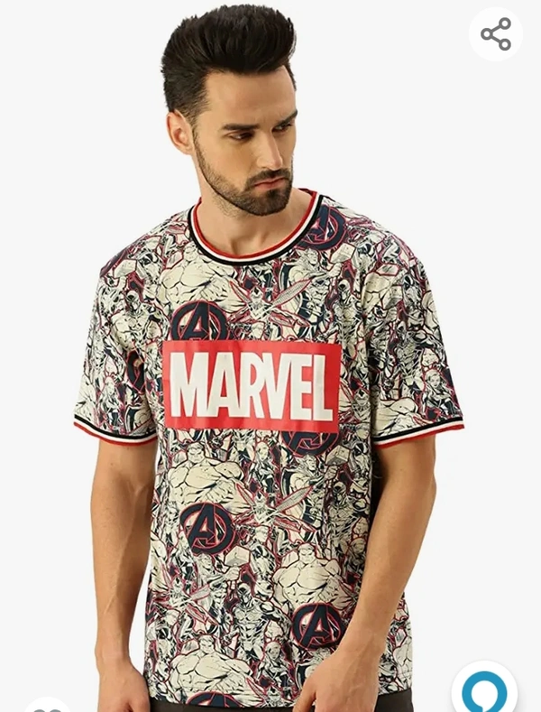 Veirdo Marvel Doodle Me Strong- Marvel Avengers- Original Marvel Tee Avengers Printed Oversize | Loose Fit Half Sleeves T-Shirt for Mens/Boys
