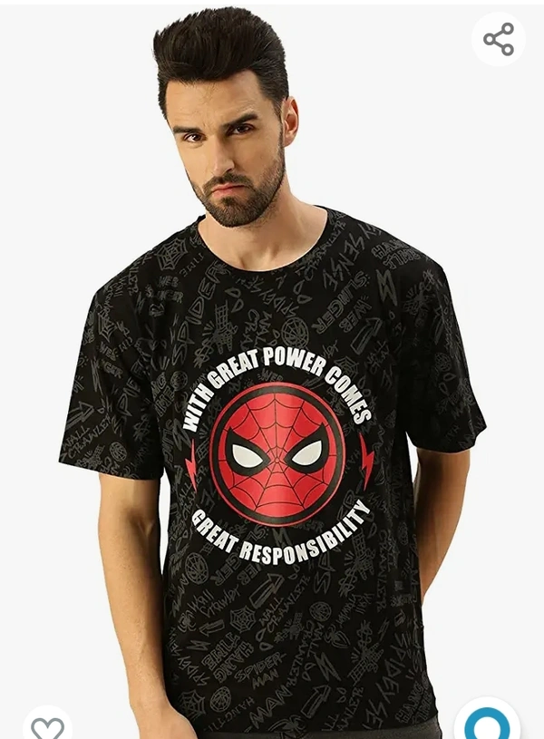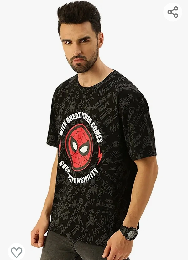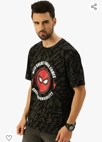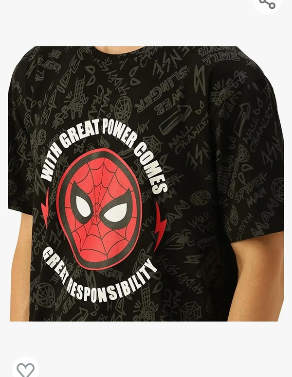 Veirdo Marvel Spider Power -Original Marvel Printed Oversize Half Sleeves T-Shirt for Men Black Red