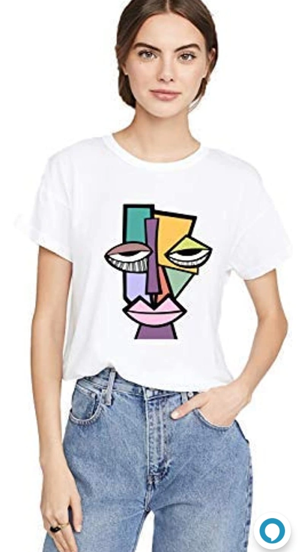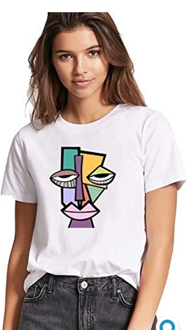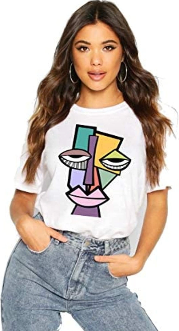 VLAM Graphic Printed FaceArt Round Neck Tshirt for Women