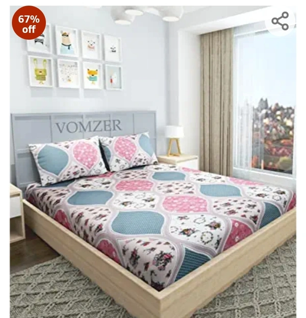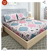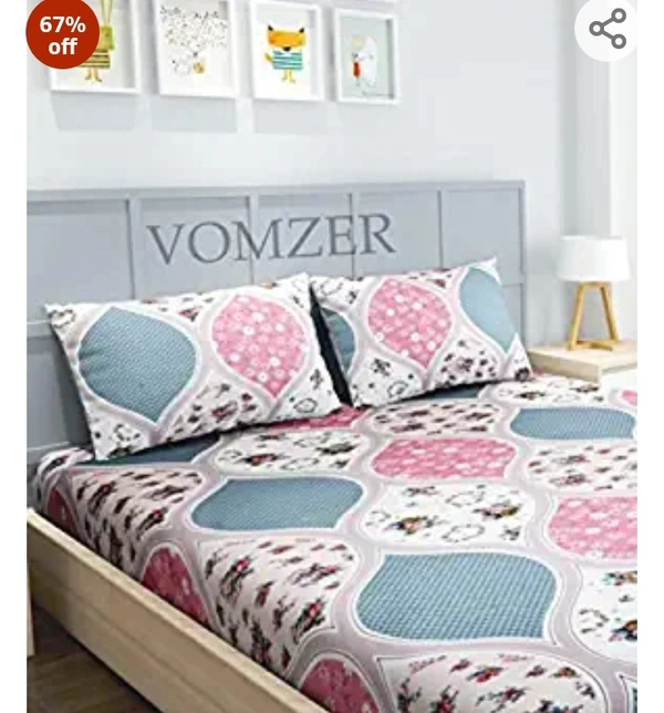VOMZER - Home Décor 200TC Elastic Fitted Double Bed Bedsheets with 2 Pillow Cover - King Size 78" x 72 (White Pink)67%off