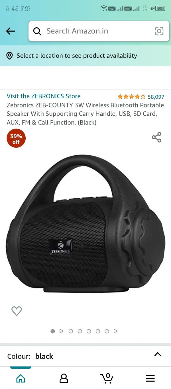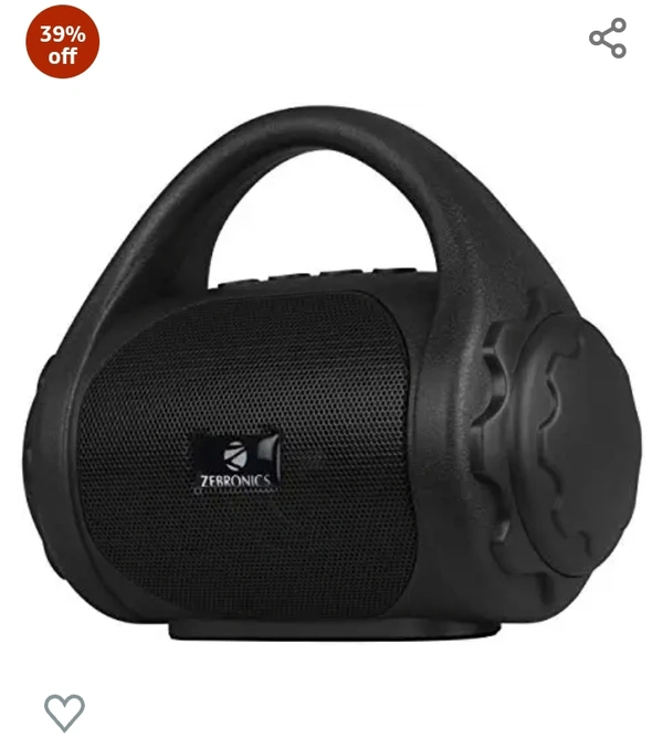Zebronics ZEB-COUNTY 3W Wireless Bluetooth Portable Speaker With Supporting Carry Handle, USB, SD Card, AUX, FM & Call Function. (Black)39%off