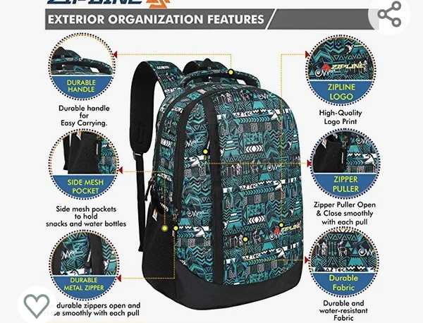 ZIPLINE Unisex Casual Polyester 36 L Backpack School Bag Women Men Boys Girls Children Daypack College Bag Book School Sports Bag