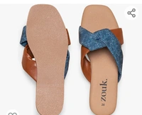 ZOUK 100% Vegan Leather Handcrafted Women's Dark Blue Abstract Andaman Marine Cross Sliders (39)